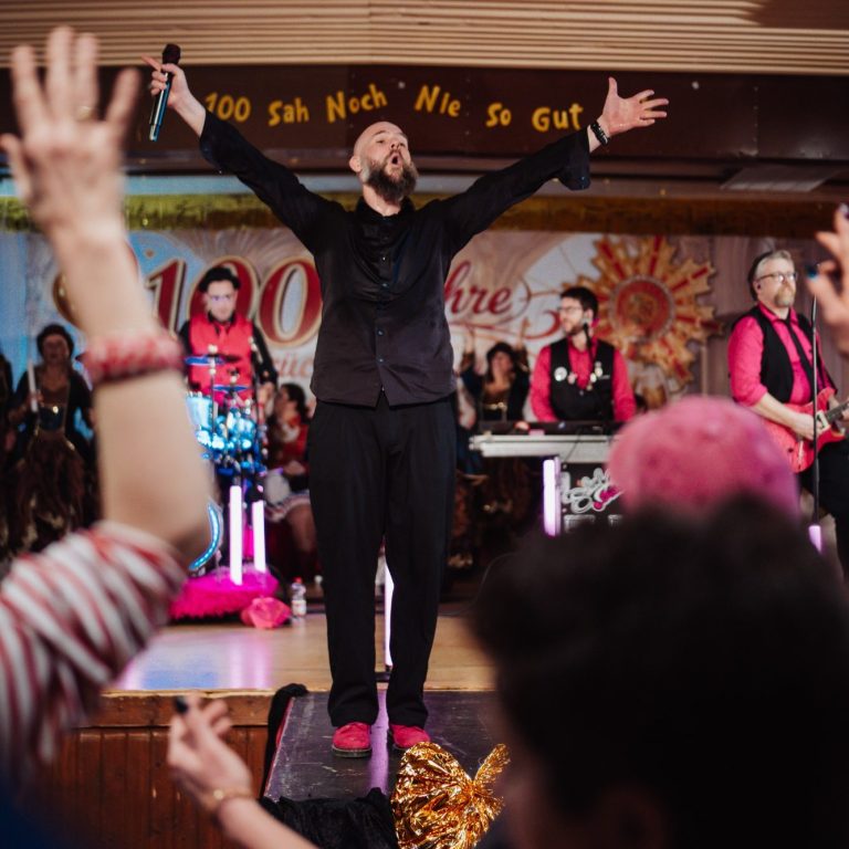 Doch dieser Abend war nicht nur von ausgelassener Freude geprägt, sondern auch von großen Emotionen. Die Gastgeberinnen verabschiedeten Irmgard Köhler in ihren wohlverdienten Ruhestand – und schenkten ihr einen Abschied, wie er würdevoller und persönlicher kaum hätte sein können. Als plötzlich alle in der Paraderolle des Ähn us Jönnersdorf auf die Bühne kamen, blieb kaum ein Auge trocken. Einige Tränen kullerten – aus Dankbarkeit, aus Verbundenheit und aus tiefem Respekt. Als wäre das nicht schon besonders genug, wurden sogar zwei Lieder eigens für Irmgard im Tonstudio aufgenommen und an diesem Abend uraufgeführt. Ein Moment, den niemand so schnell vergessen wird.